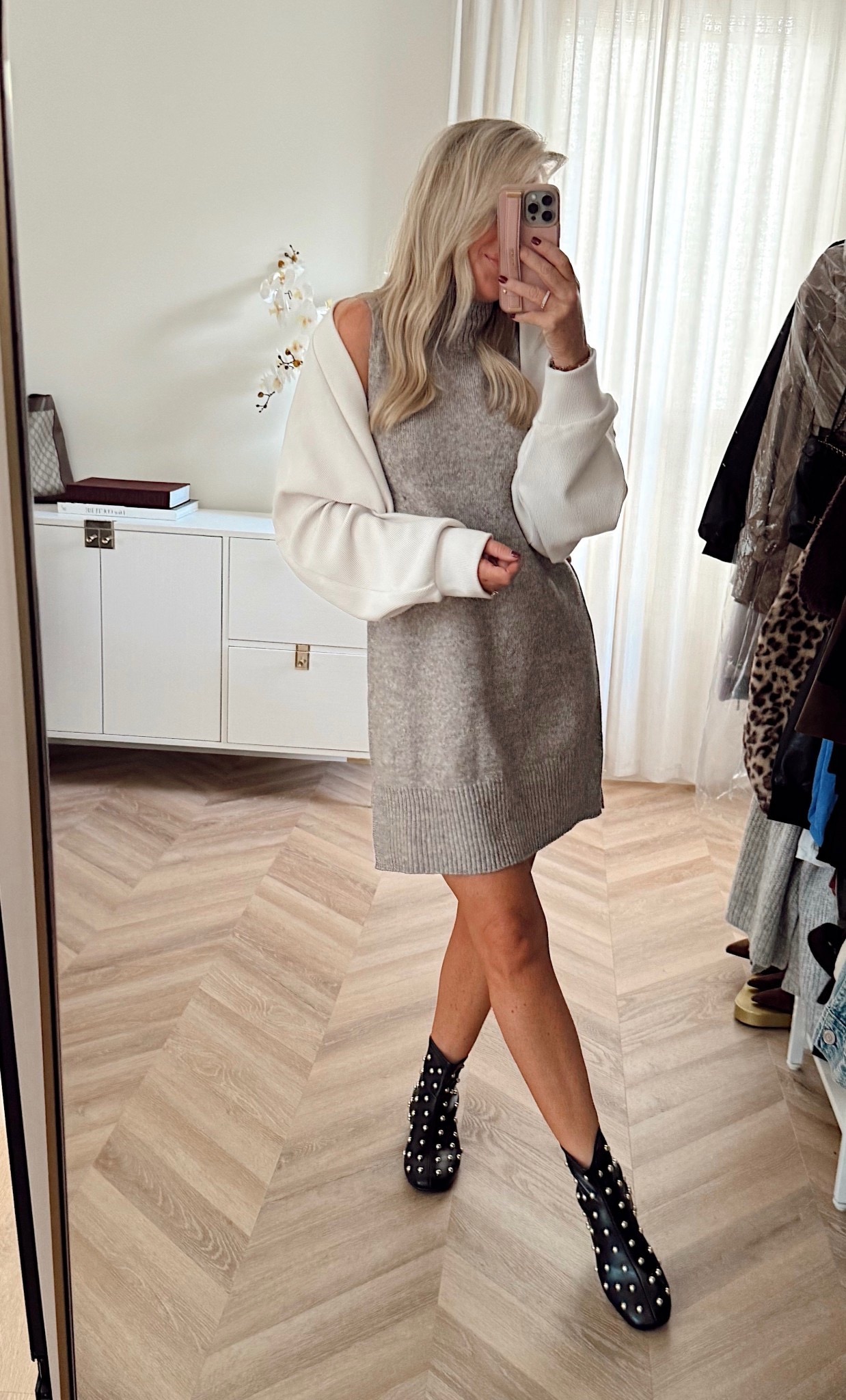 This Walmart sweater dress is 🔥 I paired mine with a CROP blazer! Obsessed! More colors too. It is s adorable and looks expensive. 😍 Flats are true to size. I styled with a shrug too! I sized up in this, I’m wearing a large. Booties are so comfy and are true to size.